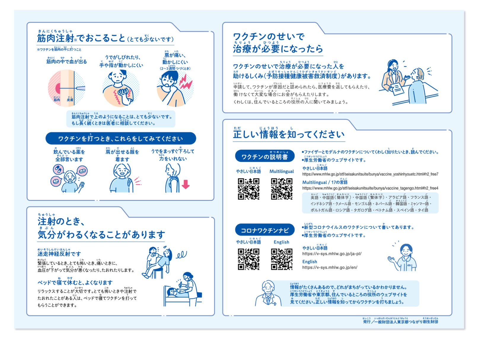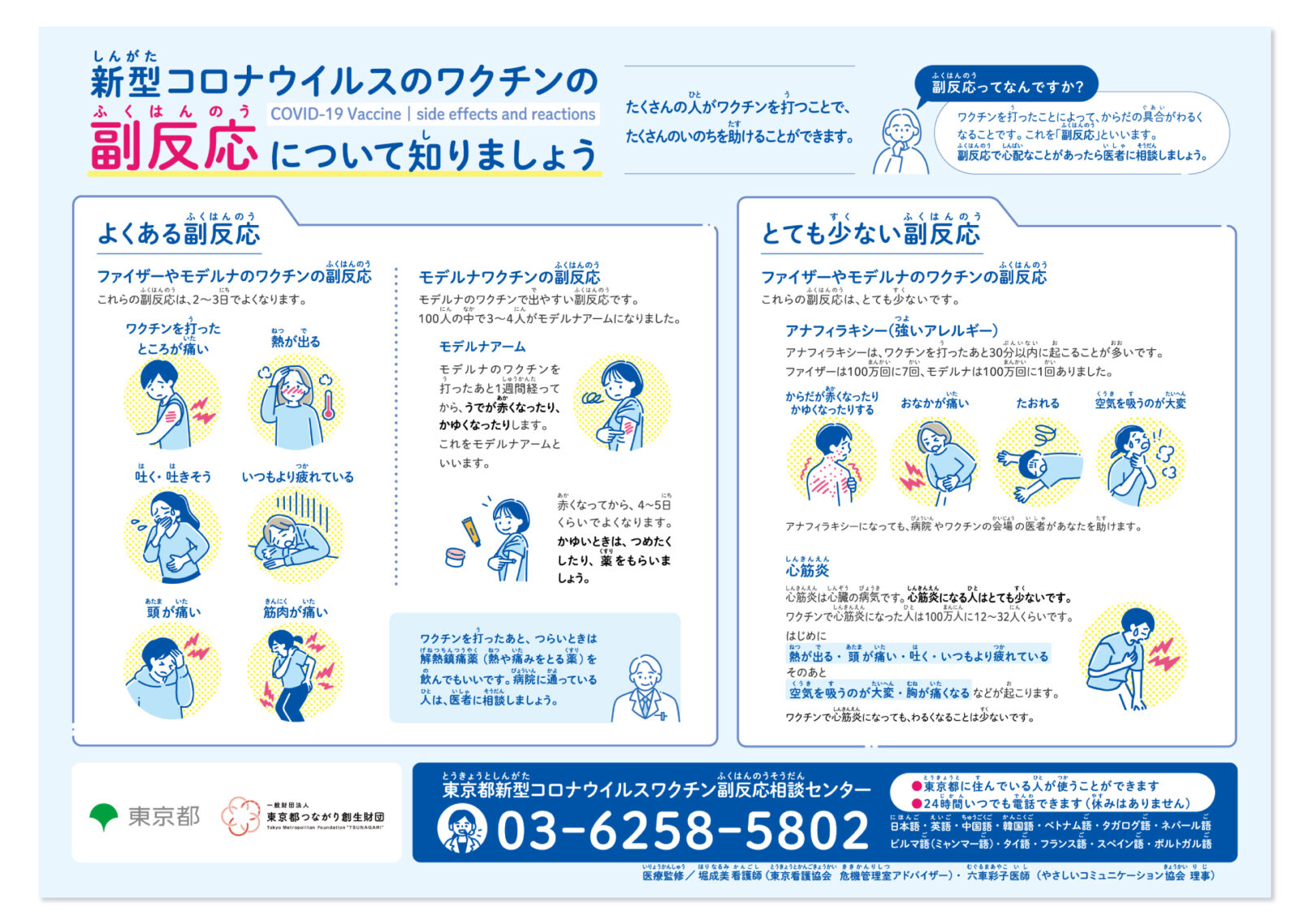 東京都多文化共生ポータルサイトに掲載の新型コロナウイルスのワクチンの副反応に関するリーフレットを制作しました。