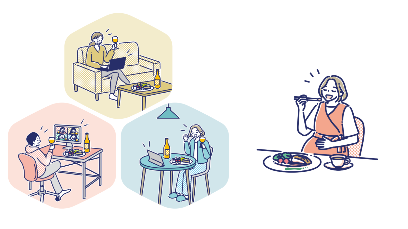 レストランメニューをお取り寄せしてオンラインで食事を楽しむサービス「いっしょテーブル」のロゴデザイン及びイラストレーションを担当しました。